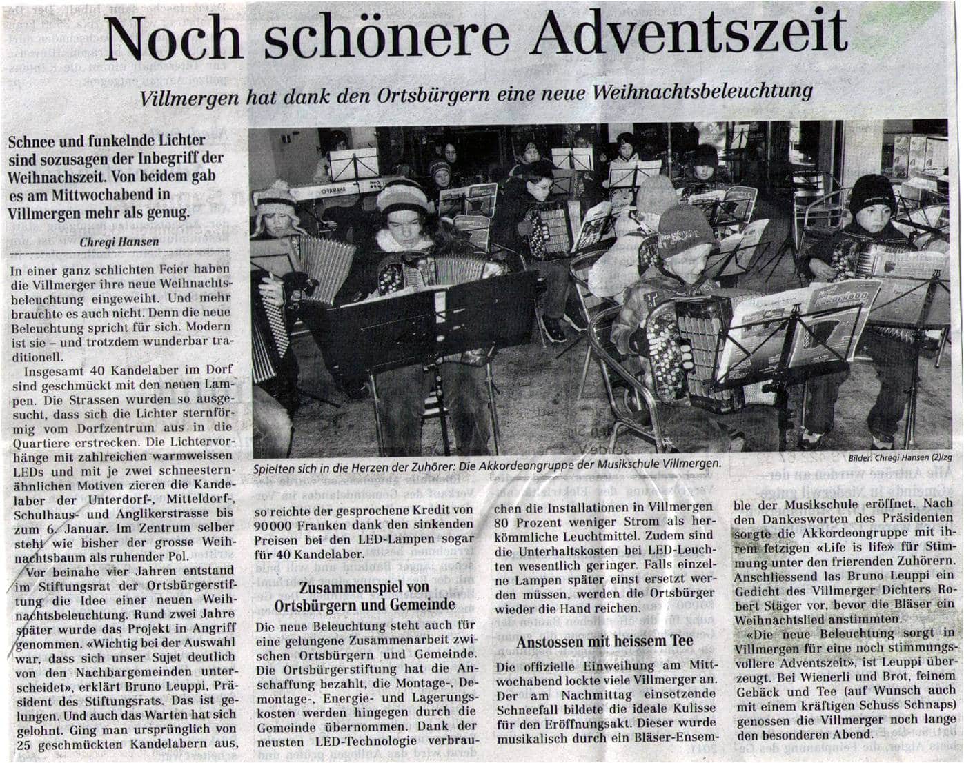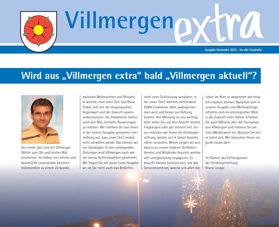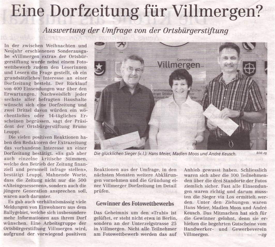 In der zwischen Weihnachten und Neujahr erschieneen Sonderausgabe „Villmergen Extra“ der Ortsbürgersitftung wurde den Leserinnen und Lesern die Frage gestellt, ob ein grundsätzliches Interesse an einer Dorfzeitung besteht.