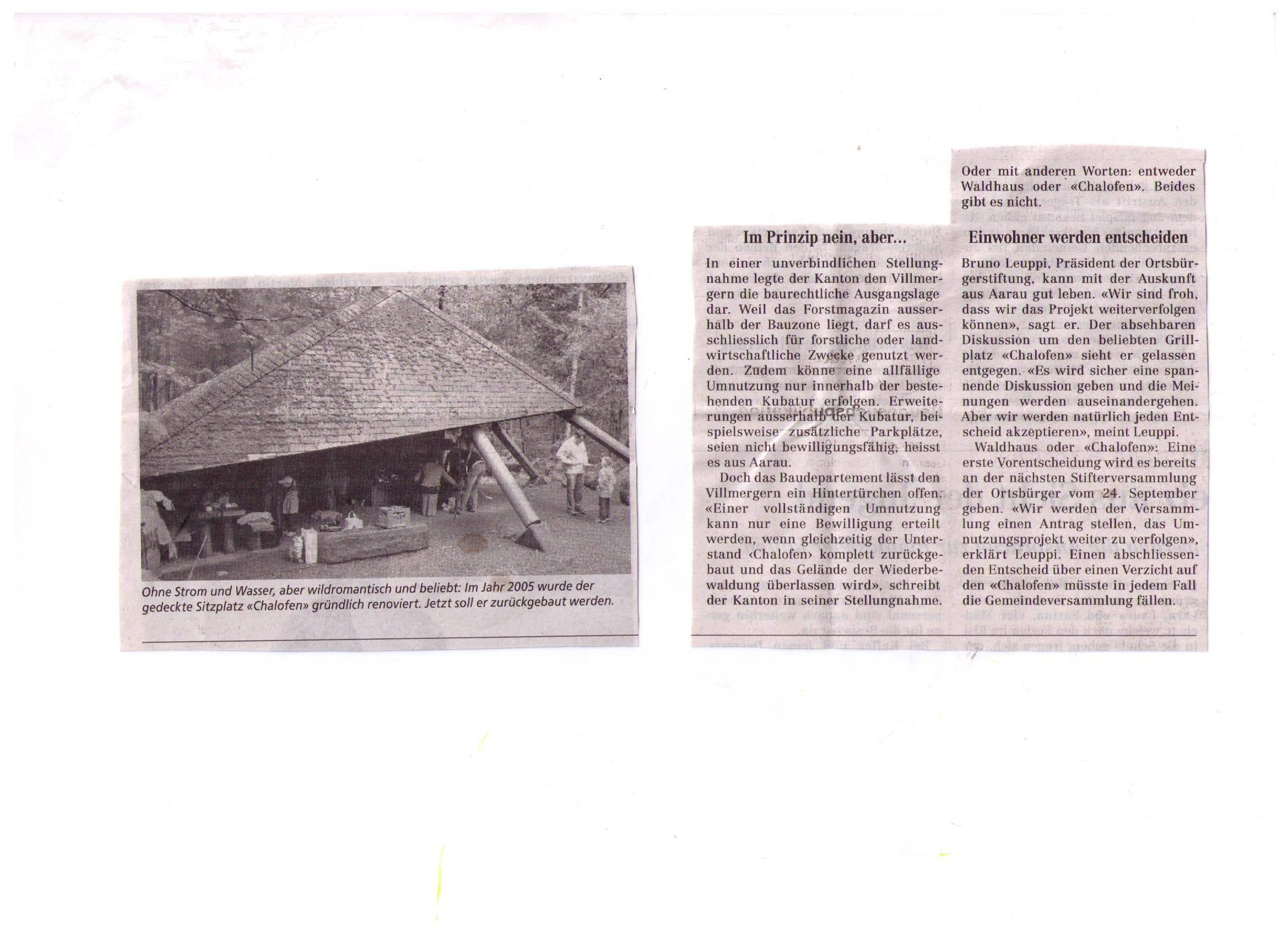 Da wird eine heikle Diskussion auf Villmergen zukommen: Der Kanton will die Umnutzung des ehemaligen Forstmagazins nur bewilligen, wenn im Gegenzug der beliebte Grillplastz „Chalofen“ verschwindet.