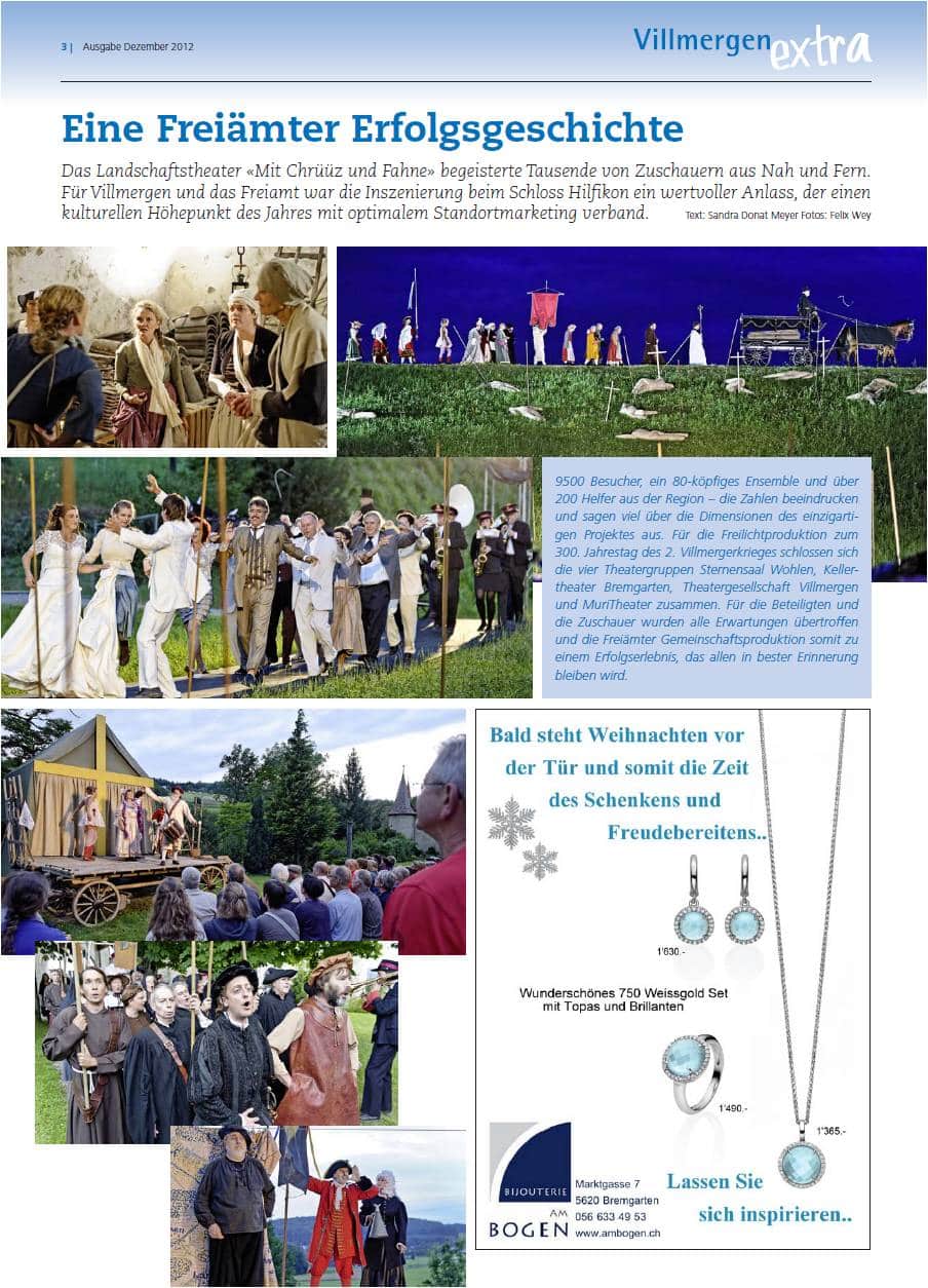Das Landschaftstheater „Mit Chrüüz und Fahne“ begeisterte Tausende von Zuschauern aus Nah und Fern. Für Villmergen und das Freiamt war die Inszenierung beim Schloss Hilfikon ein wertvoller Anlass, der einen kulturellen Höhepunkt des Jahres mit optimalem Standortmarketing verband.