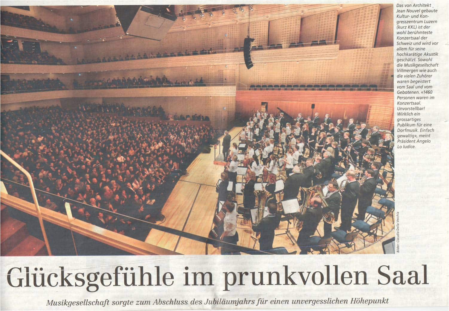 Jubiläumskonzert der Musikgesellschaft Villmergen im KKL Luzern