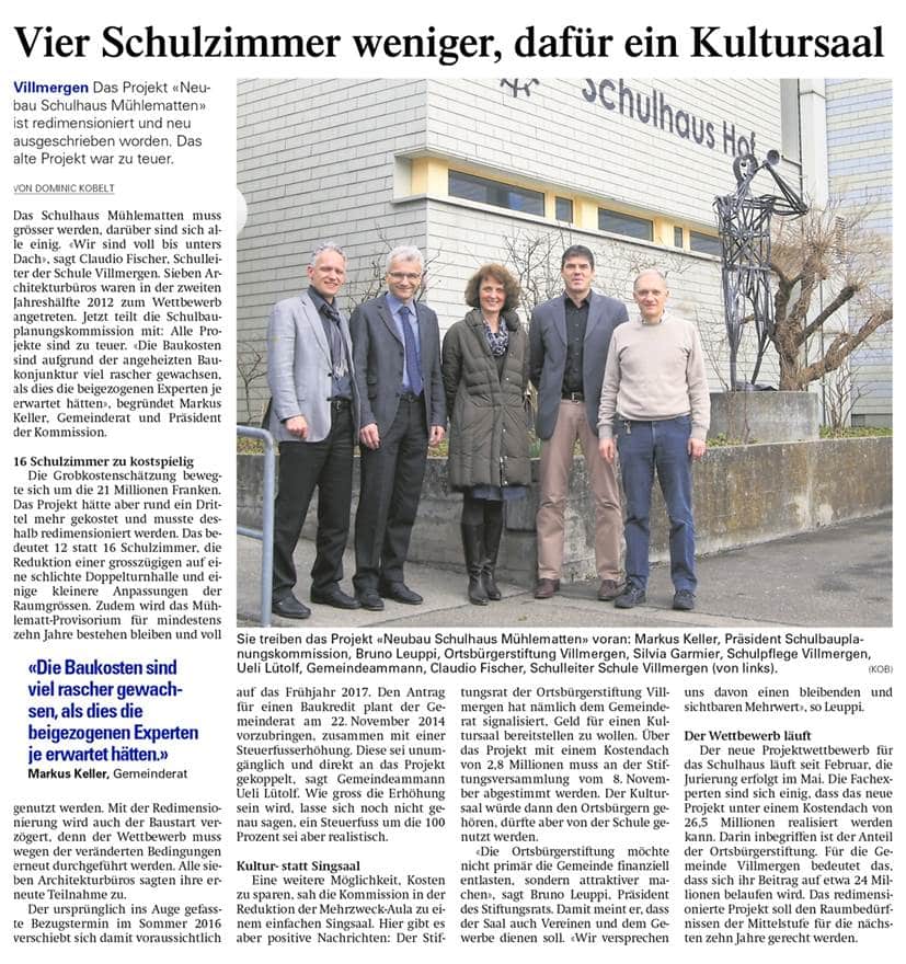 Schulhausneubau Mühlematten: Redimensionierte Projekt, Mehrausgaben und neuer Partner.