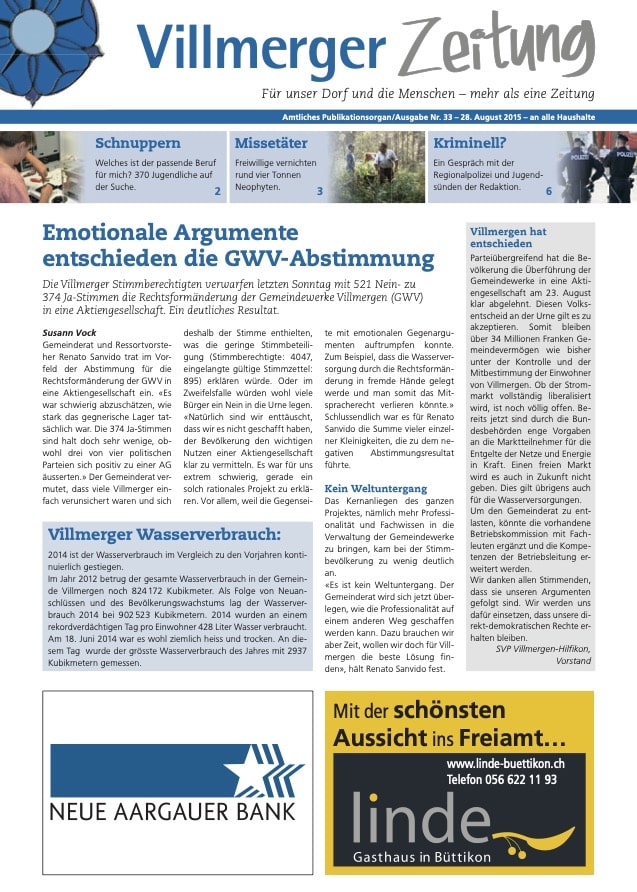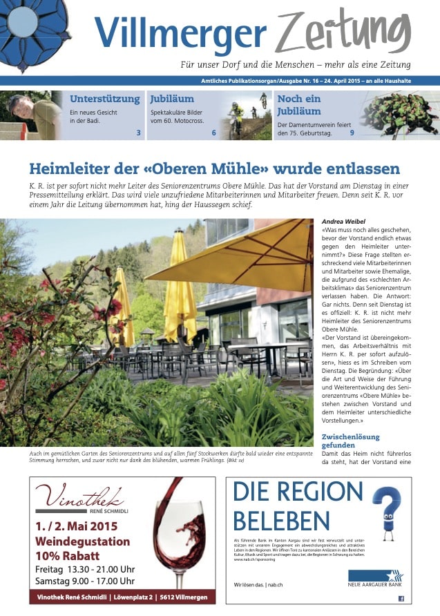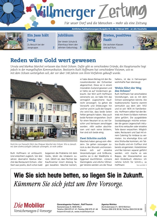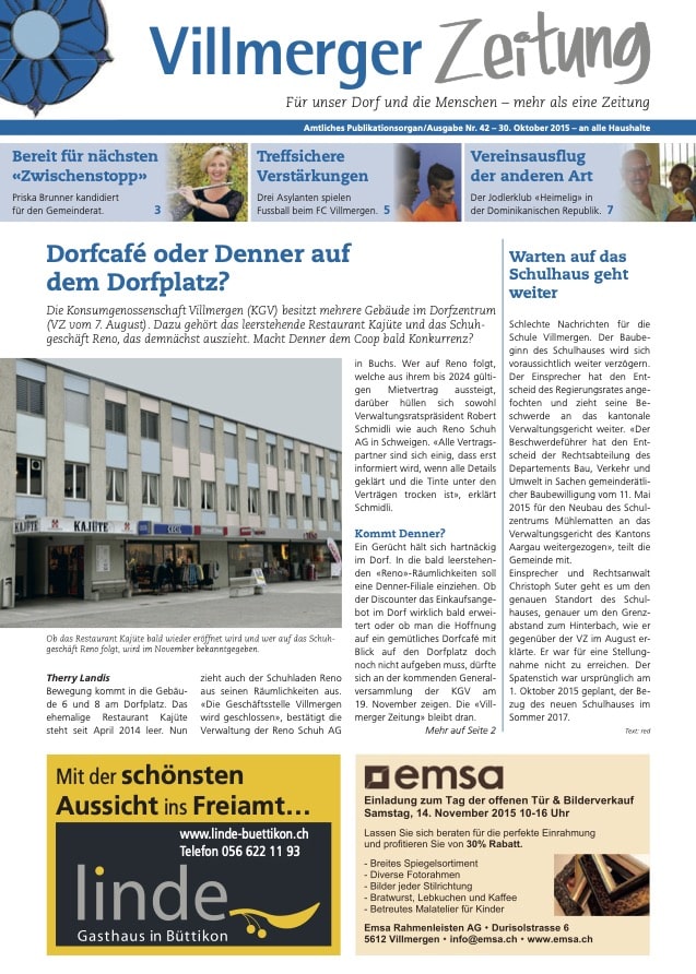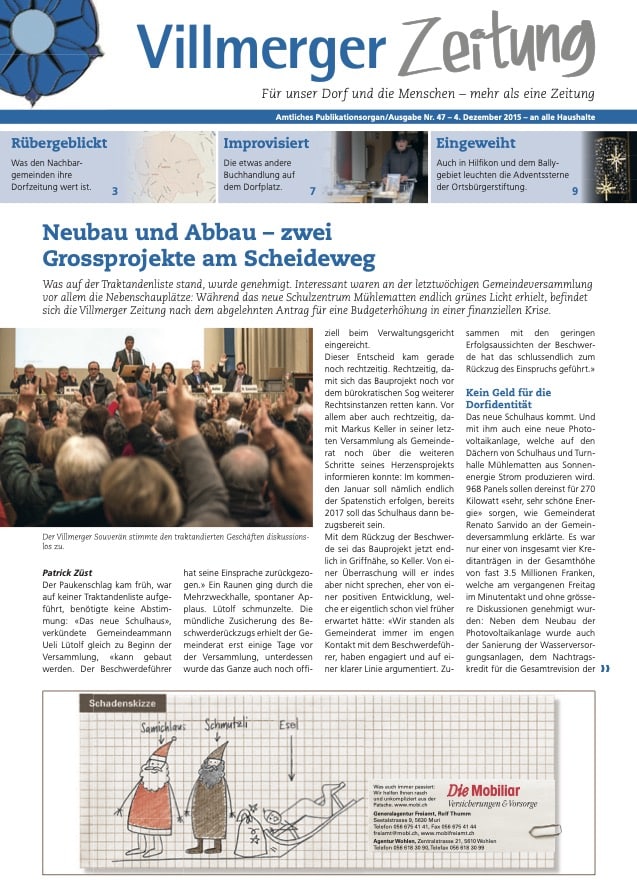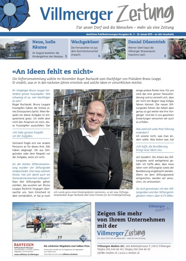 Ausgaben Archiv 2016 Archiv 2015 Archiv 2014 Archiv 2013 Archiv 2012 Bildergalerien Fotogalerie 2016 Fotogalerie 2015 Fotogalerie 2014 Fotogalerie 2013 Serien Kochtopf Velotour Ausgaben Archiv 2016 Archiv 2015 Archiv 2014 Archiv 2013 Archiv 2012 Bildergalerien Fotogalerie 2016 Fotogalerie 2015 Fotogalerie 2014 Fotogalerie 2013 Serien Kochtopf Velotour Archiv Villmerger Zeitung Archiv Villmerger Zeitung 2016 Archiv Villmerger Zeitung 2015 Archiv Villmerger Zeitung 2014 Archiv Villmerger Zeitung 2013 Archiv Villmergen extra 2012 Archiv Villmergen extra 2010 Archiv 2015 Ausgabe N°01 09. Januar 2015 Download Ausgabe N°02 16. Januar 2015 Download Bildergalerien Zu den Bildergalerien 2015 Ausgabe N°03 23. Januar 2015 Download Ausgabe N°04 30. Januar 2015 Download Ausgabe N°05 06. Februar 2015 Download Ausgabe N°06 13. Februar 2015 Download Ausgabe N°07 20. Februar 2015 Download Ausgabe N°08 27. Februar 2015 Download Ausgabe N°09 06. März 2015 Download Ausgabe N°10 13. März 2015 Download Ausgabe N°11 20. März 2015 Download Ausgabe N°12 27. März 2015 Download Ausgabe N°13 02. April 2015 Download Ausgabe N°14 10. April 2015 Download Ausgabe N°15 17. April 2015 Download Ausgabe N°16 24. April 2015 Download Ausgabe N°17 01. Mai 2015 Download Ausgabe N°18 08. Mai 2015 Download Ausgabe N°19 15. Mai 2015 Download Ausgabe N°20 22. Mai 2015 Download Ausgabe N°21 29. Mai 2015 Download Ausgabe N°22 05. Juni 2015 Download Ausgabe N°23 12. Juni 2015 Download Ausgabe N°24 19. Juni 2015 Download Ausgabe N°25 26. Juni 2015 Download Ausgabe N°26 03. Juli 2015 Download Ausgabe N°27 10. Juli 2015 Download Ausgabe N°28 17. Juli 2015 Download Ausgabe N°29 24. Juli 2015 Download Ausgabe N°30 07. August 2015 Download Ausgabe N°31 14. August 2015 Download Ausgabe N°32 21. August 2015 Download Ausgabe N°33 28. August 2015 Download Ausgabe N°34 05. September 2015 Download Ausgabe N°35 11. September 2015 Download Ausgabe N°36 18. September 2015 Download Ausgabe N°37 25. September 2015 Download Ausgabe N°38 02. Oktober 2015 Download Ausgabe N°39 09. Oktober 2015 Download Ausgabe N°40 16. Oktober 2015 Download Ausgabe N°41 23. Oktober 2015 Download Ausgabe N°42 30. Oktober 2015 Download Ausgabe N°43 06. November 2015 Download Ausgabe N°44 13. November 2015 Download Ausgabe N°45 20. November 2015 Download Ausgabe N°46 27. November 2015 Download Ausgabe N°47 04. Dezember 2015 Download Ausgabe N°48 11. Dezember 2015 Download Ausgabe N°49 18. Dezember 2015 Download archiv ausgaben 2014 Sitemap Ausgaben Archiv 2016 Archiv 2015 Archiv 2014 Archiv 2013 Archiv 2012 Archiv 2010 Bildergalerien Galerie 2016 Galerie 2015 Galerie 2014 Galerie 2013 Galerie 2012 Serien In den Kochtop geschaut Velotouren Kontakt Ortsbürgerstiftung Villmergen © 2015 Villmergen Medien AG | Ortsbürgerstiftung VillmergenWebdesign by Digital Publishing GmbH
